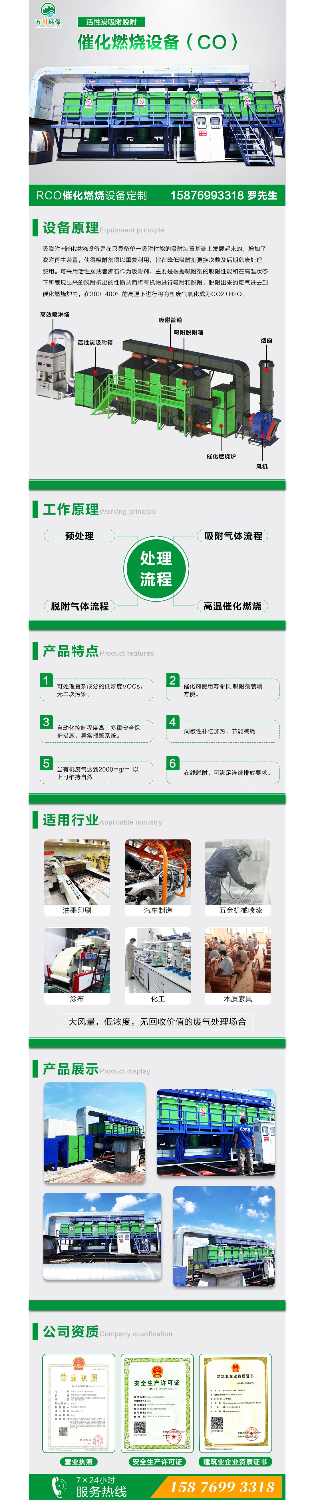 簡介:CO催化燃燒設備主要由干式過濾、活性炭吸附床、催化燃燒脫附床、配套風機、電器控制等組成。