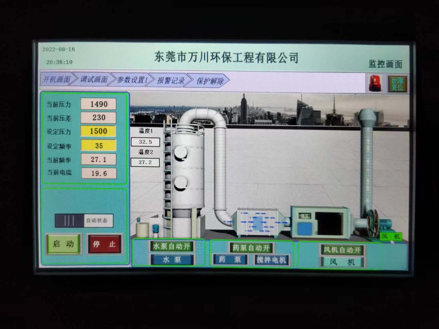 3、自動加藥功能:PH計和加藥泵與風機聯動。